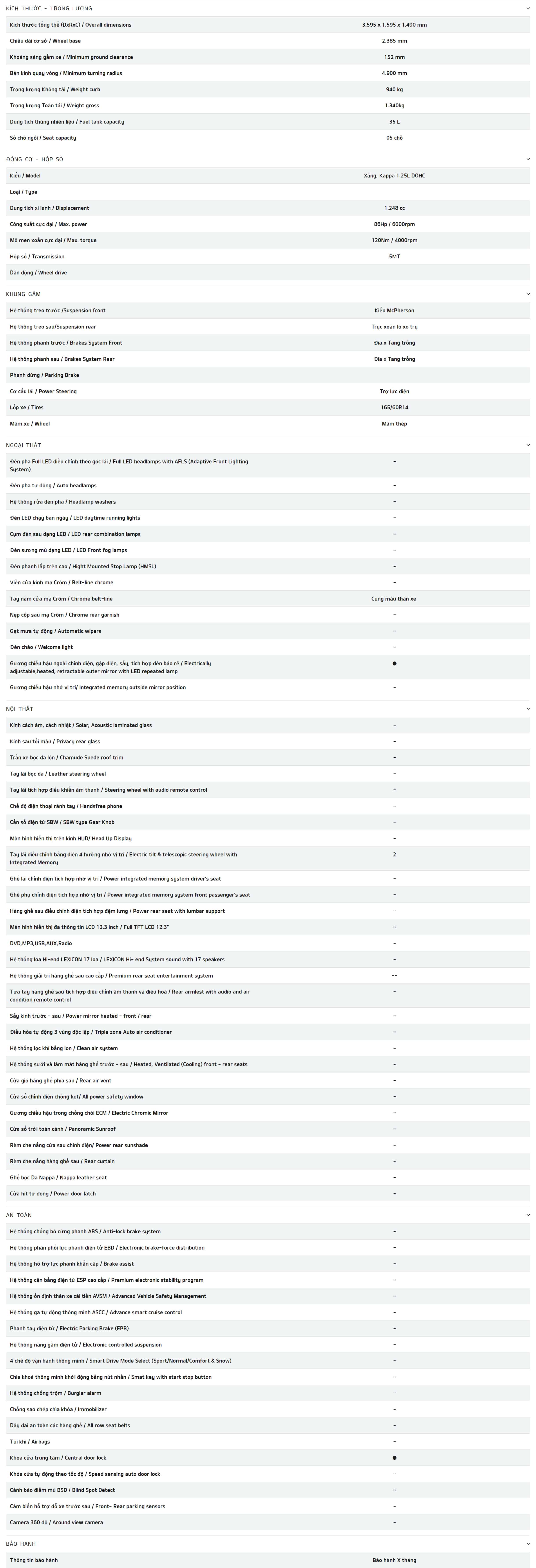 Động cơ Xăng, Kappa 1.25L. Công suất: 86 hp / 6000 rpm. Monen xoắn: 120 N.m / 4000 rpm. Đa dạng sự lựa chọn với hộp số 4 cấp (bản tự động) và 5 cấp (bản số sàn) cho cảm giác lái ấn tượng.